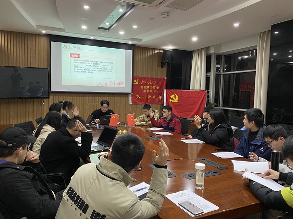 会议上,全体党员同志通过深入阅读《中国共产党第十九届中央委员会第五次全体会议公报》纸质学习资料、共同观看中共中央新闻发布会视频等方式全面、系统、深入学习了党的十九届五中全会精神。随后,党员们互相讨论并积极分享了自己学习全会精神的心得体会。熊国杰同志分享了关于创新方面的感想,“应当坚持创新在我国现代化建设全局中的核心地位,把科技自立自强作为国家发展的战略支撑。要强化国家战略科技力量,提升企业技术创新能力,激发人才创新活力,完善科技创新体制机制。” 郑树云同志针对餐饮浪费的问题谈到,“古话常说:民以食为天,食以俭养德。中华民族自古以来就有敬天惜粮的传统,勤俭节约也是我们党一以贯之的优良作风。只有人人自觉践行,节俭才能蔚然成风。” 张武凯同志介绍了自己关于扶贫方向的思考,“2020年是全面建成小康社会的关键年,脱贫攻坚战也处于关键时期。扶贫工作不是一次性的战斗,也不是局部的战役,而是一场涉及几千万贫困人口的战争,要把‘扶贫’抓在手上、记在心上、扛在肩上,为实现如期脱贫,决胜攻坚战提供应有的战斗力。”李林祥同志讲述了自己关于生态环保相关的体会:“既要绿水青山,也要金山银山,生态文明是人类文明发展的新阶段,是继原始文明、农业文明、工业文明之后崭新的文明形态。”