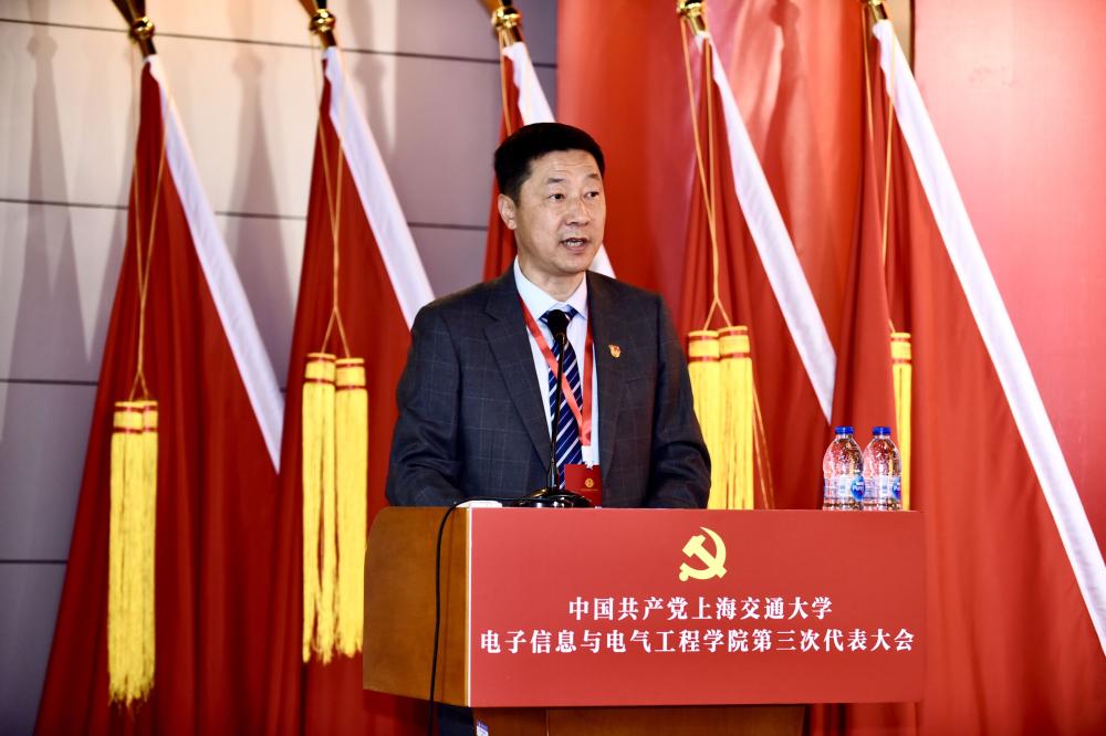 大会在庄严的国歌声中拉开帷幕。顾锋代表学校党委对本次大会的召开表示热烈祝贺。他在讲话中充分肯定了电院五年来在党建工作、人才培养、师资队伍、科技创新、管理改革、文化引领等方面所取得的成效,并对今后工作提出要求。他指出,电院党委要着重在以下三个方面全面发力:一是坚持社会主义办学方向,全面加强党的领导和建设。二是坚持立德树人,推进高水平师资队伍建设,打造一流的人才培养高地。三是聚焦新型产业,瞄准国家战略需求,打造具有核心竞争力的创新策源地。顾锋希望本次党代会选举产生的新一届党委班子,继承和发扬电院的优良传统,勠力同心、奋楫笃行,在新进程中发挥坚强的领导核心作用,带领全院师生乘势而上、奋力拼搏,以一流的政治成色、一流的科研创新,培养一流的高层次创新人才。