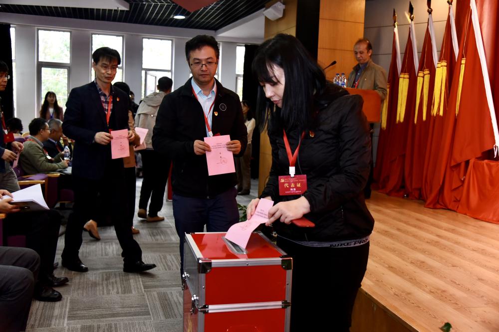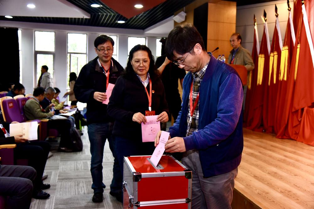 大会以无记名投票方式差额选举产生了第三届电院委员会。关新平(满族)、朱浩瑾、朱淼、刘景全、苏跃增、李柠(女)、李生红、李劲湘、金荣洪、胡卫生、徐剑波、梁玉杰(女)、韩韬(按姓氏笔画为序)13位同志当选为第三届电院党委委员。