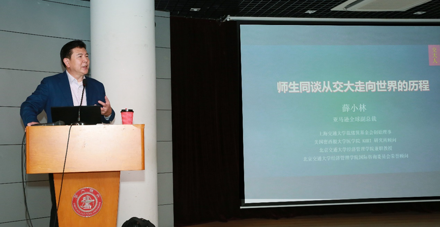 10月23日下午,电院自动化系1977级校友、亚马逊全球副总裁薛小林回到交大校园,畅谈了自己的成长经历,以现身说法和成功经验分享了他如何先后从农村、工厂、兵营走进交大,又如何从交大走向世界,把中国人的风采展现给世界,又把世界带进了中国。