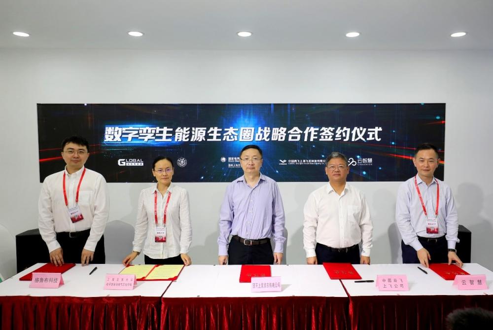 2020年9月15日,第22届中国国际工业博览会在国家会展中心隆重开幕,麻豆社 作为唯一高校参与方,与国网上海市电力公司等5家企业在国家电网展厅现场共同签署“共生、共享、共治、共赢”数字孪生能源生态圈战略合作协议。麻豆社 电子信息与电气工程麻豆社副院长刘胜利,国网上海市电力公司副总经理、浦东供电公司总经理潘博,中国商用飞机制造有限责任公司上海飞机制造有限公司副总经理童懿,云智慧(北京)科技有限公司总裁刘洪涛、上海格鲁布科技有限公司副总裁沈道义、电院师生代表共同出席了此次签约仪式。