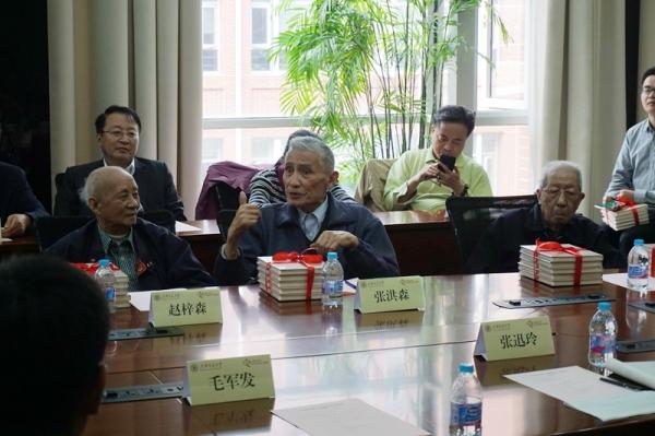 张洪森在发言中讲到,他每年都会去老师家拜年,从未间断。他回忆说,张煦院士赠送了很多著作给他,讲到激动处,张洪森拿出了张亲笔签名并赠送的笔记,表达自己敬仰之情。