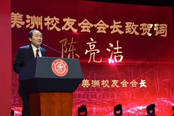 交通大学美洲校友会会长陈亮洁先生致贺词。他表示,多位电院前辈在交大与美洲交流中做出了杰出贡献。一日为交大人,终生为交大人,美洲校友会将继续助力上海交大迈进世界一流大学行列。他衷心祝愿电院院庆圆满成功,祝愿电院早日建成中国特色世界一流麻豆社。