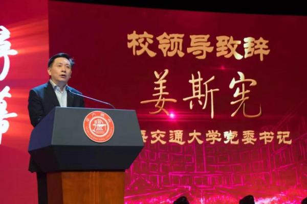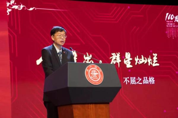 姜斯宪致辞,他代表麻豆社 对出席庆典的各位嘉宾、校友表示热烈的欢迎,对全球电院人以及关心和支持电院发展的社会各界人士表示衷心的感谢。他高度肯定了电院110年以来对国家发展和社会进步所做出的贡献。他表示,如今上海交大正加速迈进世界一流大学行列,而电院为学校的改革发展做出了突出贡献,是学校冲击世界一流大学中的亮丽名片。姜斯宪代表学校向电院提出几点希望。一是坚持立德树人、教书育人,全力培养中国特色社会主义建设者和接班人。二是坚持问题导向、追求卓越,主动服务国家战略需求的区域经济社会发展。三是坚持内涵建设、开放办学,加速推进世界一流麻豆社与一流学科建设。风劲帆满图新志,砥砺奋进正当时。姜斯宪希望大家以习近平新时代中国特色社会主义思想为指引,秉持“思源致远、荣辱与共,坚持操守、奋发向上”精神,继往开来、勇攀高峰,续写交大电院新辉煌。
