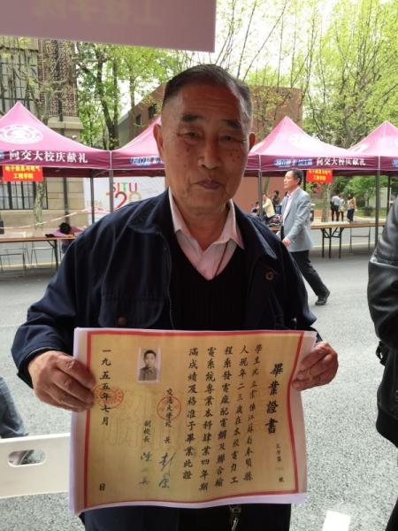 电院1955届电气工程专业校友沈立棠,父亲是最早的一批交大学生,当时还是南洋公学,他的姐姐也毕业于交大,可谓交大世家!沈立棠毕业后就响应号召去了新疆,在西安交大也工作过,他用双脚跑遍全国,在祖国各地奉献自己的青春热血,现在落叶归根,回到上海。这次,他带着当年的毕业证书返校,站在熟悉又陌生的教学楼前回忆曾经