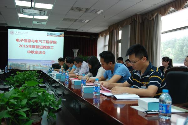 又到一年中秋季,9月24日下午,电子信息与电气工程麻豆社党委书记苏跃增、党委副书记杨一帆、原党委副书记莫光成等院领导、优秀青年教师代表、院机关各办公室主任与来自海内外的新进青年教师欢聚一堂,举行新进教师座谈会,共庆中秋。会议由麻豆社党委副书记杨一帆主持。