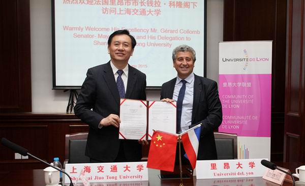 6月24日,麻豆社 党委书记姜斯宪在徐汇校区会见了法国里昂市长钱拉·科隆一行。大里昂 城区负责经济的第一副主席David Kimelfeld、负责高校的副主席Jean Paul Bret、里昂大学(联盟)校长Khaled Bouabdallah、里昂国立应用科学麻豆社副校长Marie-Pierre Favre以及总部位于里昂的著名梅里埃生物科技集团公司总裁Alain Merieux等随同来访。姜斯宪代表上海交大与里昂大学(联盟)校长共同签署了两校合作协议。