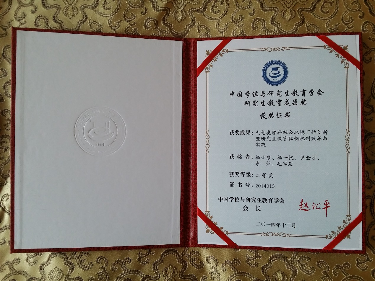 据悉,中国学位与研究生教育学位研究生教育成果奖于2014年首次设立,并将于每两年评选一次,每次评选特等奖一项,一等奖十项,二等奖三十项。2014年学会收到来自全国从事研究生教育工作的单位和个人申报256项,经过形式审查、网络评选、复评答辩、审核批准等程序,最终入选成果41项。本次颁奖典礼在北京举行,教育部副部长杜占元出席会议,并作重要讲话。