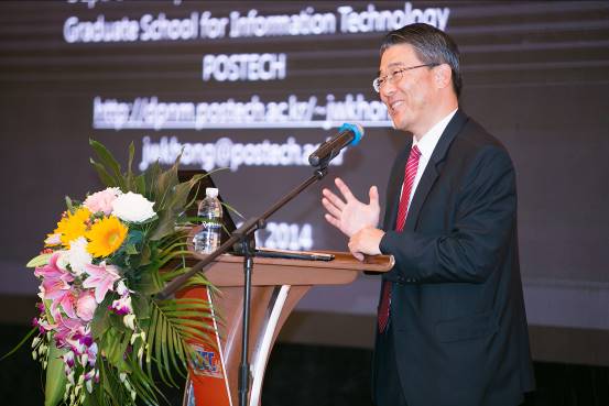 Prof. James Hong, formerly CTO of Korean Telecomm, giving keynote