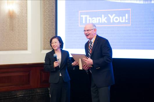 Prof. Vince Poor accepting keynote certificate from Prof. Meixia Tao