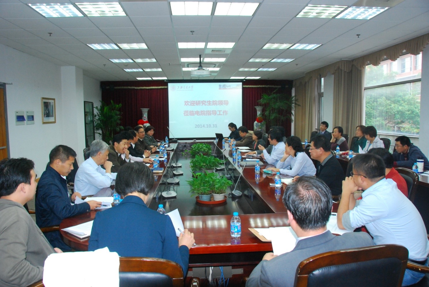 为了促进学科发展,提高研究生培养质量,研究生院常务副院长王亚光、副院长杨根科、各办公室负责人及相关人员,于10月31日到电院进行了专题调研。电院院长毛军发、党委书记苏跃增、副院长杨小康、邰能灵、院长助理马艺馨出席了会议,学部学位评定委员会主席席裕庚、各系分管研究生教学的副系主任、导师代表、研究生教务办老师参加了会议。