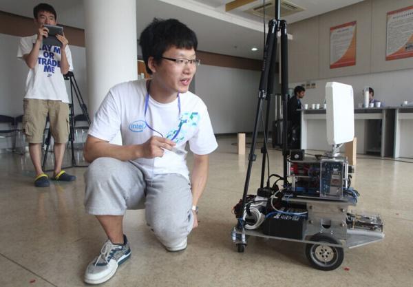 火灾现场如何迅速定位受灾者在大楼的具体位置?家中老人摔倒如何在几秒内立即获知?7月19日,上海交大RFID(射频识别)自动定位车团队将定位车开到了现场。RFID(射频识别)自动定位车主创的灵感来自于雷达扫描,萌发了在室内设置标签,让车辆搭载的阅读器像雷达一样扫码,从而确定位置的想法。这种比GPS更精确的新兴“室内定位”技术出现在2014英特尔杯大学生电子设计竞赛嵌入式专题邀请赛中展示。