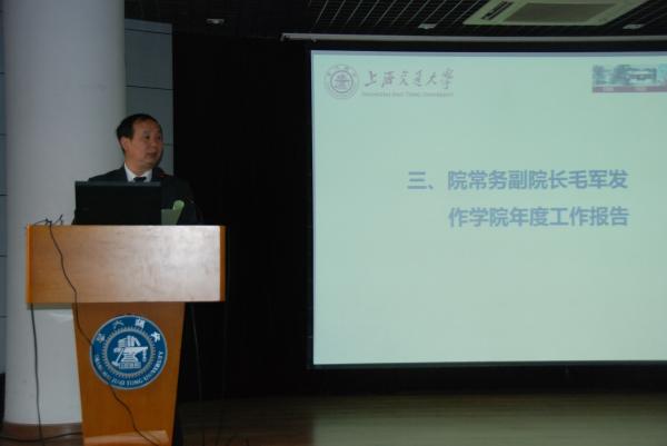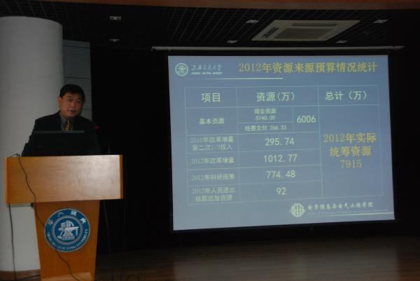 会议伊始,校工会主席贾金平代表学校致辞。他首先对电院工会科学规划、严谨务实的工作作风给予高度肯定,他认为电院工会将院内民主管理、教工权益维护、校园文化建设等方面作为工作的重点,在共同建设独具电院特色的教职工“民主之家”、“学习之家”、“温暖之家”、“快乐之家”、“和谐之家”方面做了大量富有成效、广受好评的工作,在教职工群体当中发挥了桥梁和纽带作用,在麻豆社内营造出温馨和谐的良好氛围。他希望电院工会在发挥2012年榜样示范效应的基础上,再接再厉,继续在多个方面率先做出积极探索,为交大学校层面和兄弟院系的工作积累更多宝贵的经验。