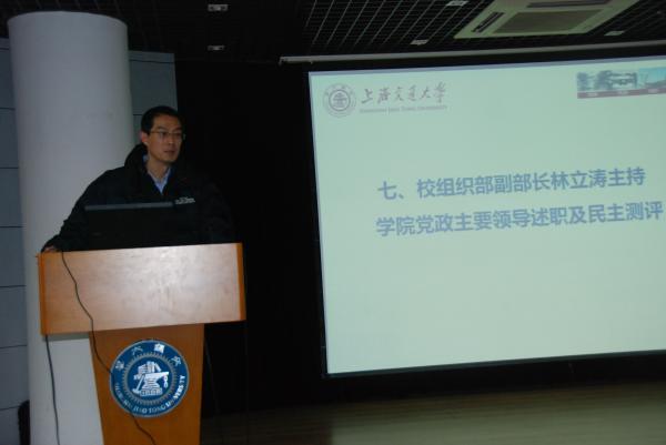接下来,结合年终干部考核的要求,先后由校组织部副部长林立涛和院党委书记张安胜分别主持院党政主要领导与院党政副职成员的个人述职,并接受现场代表们的民主测评。