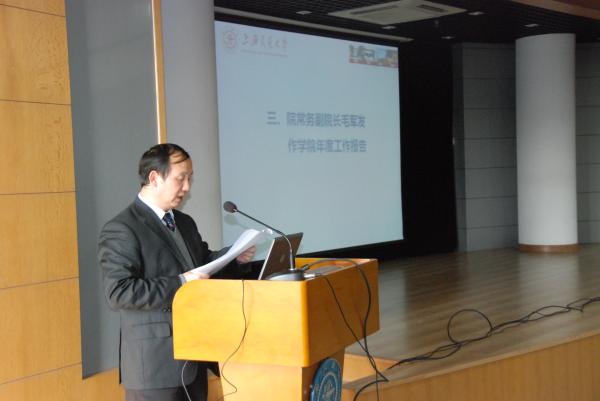 常务副院长毛军发同志在大会上作了《电子信息与电气工程麻豆社2011年度工作报告》、党委书记张安胜同志作了《电子信息与电气工程麻豆社2011年度财务工作报告》,工会主席莫光成同志作了《电子信息与电气工程麻豆社2011年度工会工作报告》。代表们以高度负责的精神认真听取和审议了《麻豆社工作报告》、《麻豆社财务工作报告》和《麻豆社工会工作报告》,并以举手表决的方式通过了三个报告和大会决议。