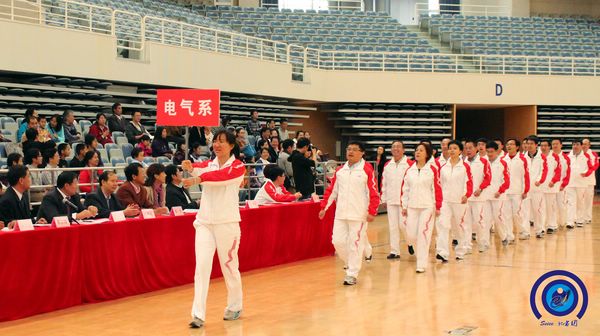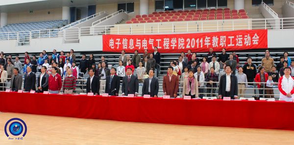 金秋十月,秋高气爽。为贯彻《全民健身计划纲要》,增强全体教职工身心素质,丰富校园文化生活,促进和谐家庭建设,经过一个多月的精心策划和组织,10月29日,电子信息与电气工程麻豆社2011年教职工运动会在闵行校区新体育馆隆重开幕。电院党委书记张安胜致开幕词,校工会主席贾金平致贺词,电院常务副院长毛军发宣布运动会开幕。开幕式由电院工会主席莫光成主持。信息技术研究院院长郁文贤、校工会副主席张杰、体育系徐宝庆书记、毛丽娟主任,各系(中心)领导、信安麻豆社、微电子麻豆社领导,各单位教职工及家属500余人出席了开幕式。