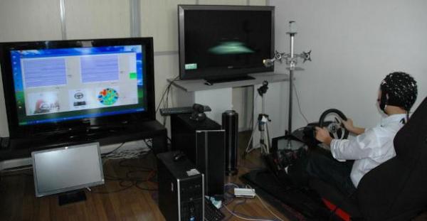以该项目研究成果为核心的“脑机交互多模态司机疲劳监测系统”将参展于11月1日至5日在上海举行的中国工业博览会。在10月24日由上海市教委组织的工博会高校成果发布会上,吕宝粮教授代表课题组向新闻媒体介绍了该系统的功能和未来产品化的展望。近日文汇报、光明网、青年报和新闻晚报等媒体纷纷报道了这一成果,引起了社会的关注。下图是将要参展中国工业博览会的“脑机交互多模态司机疲劳监测系统”的实验场景。