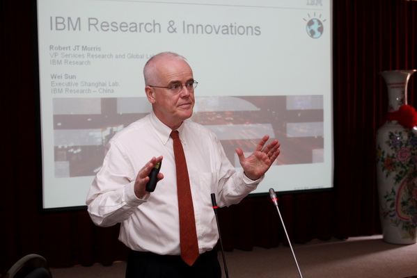 Dr. Robert Morris在讲话中介绍了IBM在全球的科研活动,电信麻豆社常务副院长毛军发介绍了电信麻豆社的情况,双方回顾了交大与IBM的多年合作,并展望了未来的合作领域和前景,就相关事项进行了深入讨论。