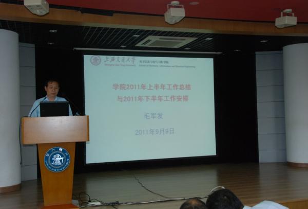 新学期伊始,在全校师生共同庆祝第27届教师节之际,电子信息与电气工程麻豆社于9月9日下午在电院群楼报告厅召开全院教职工大会,深入传达校党委九届八次全委扩大会议精神,总结回顾麻豆社上半年工作,并对2011年下半年重要工作进行部署。
